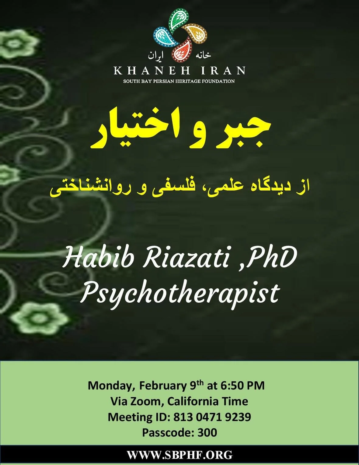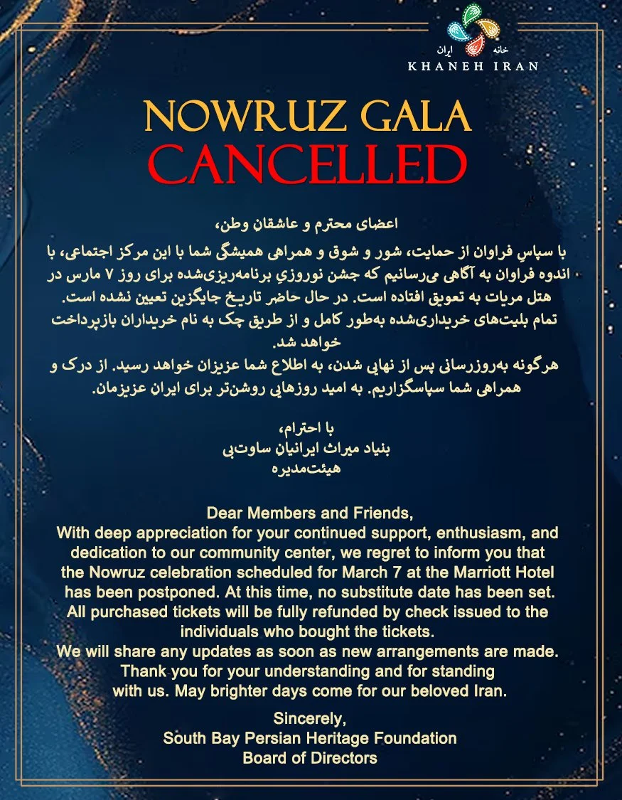 South Bay Persian Heritage Foundation, commonly known as Khaneh Iran, is a 501(c)(3) with over 35 years of serving the American community of Persian heritage in Palos Verdes and neighboring South Bay cities.